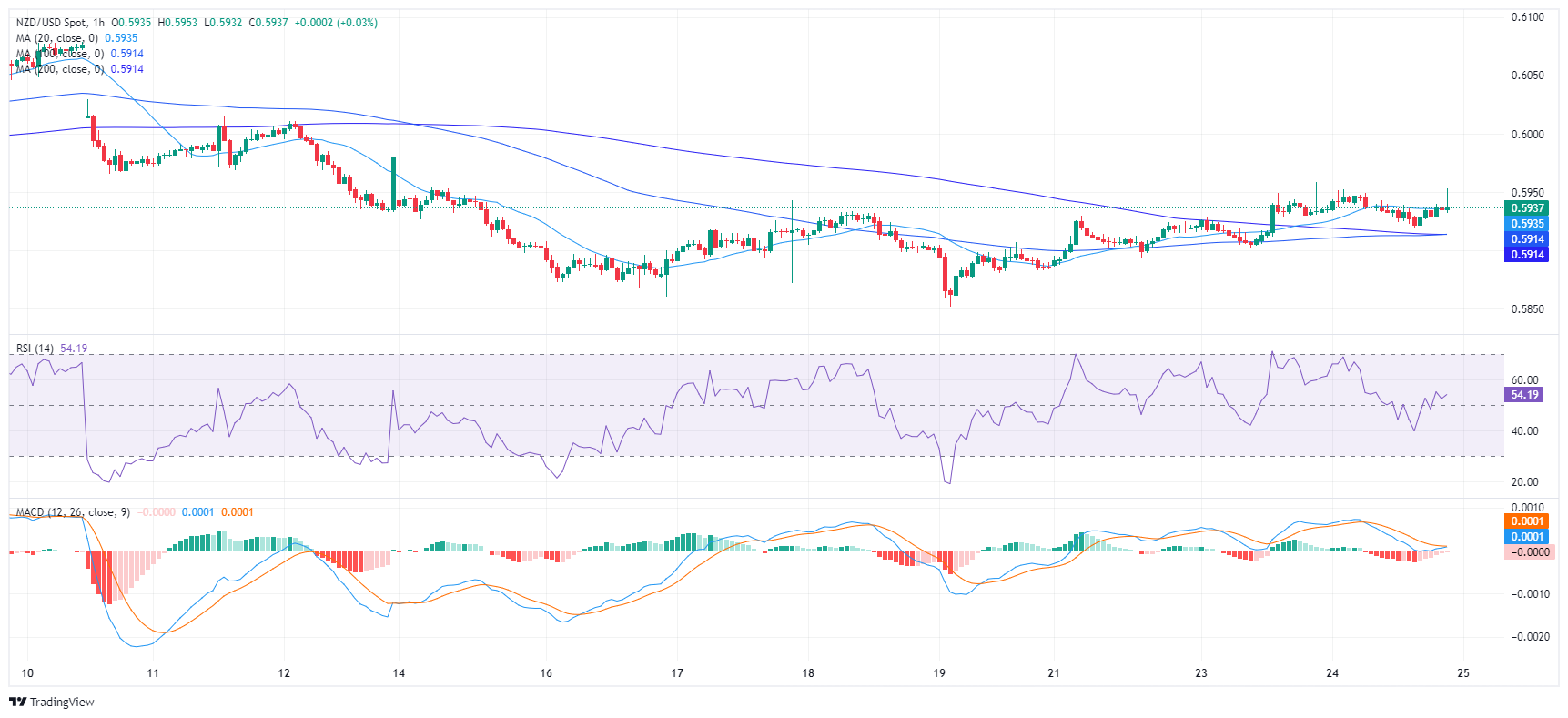 纽元/美元周三升至 0.5937,小幅上涨。长期看跌力量总体控制着该货币对的走势。然而,有信号表明多头可能正在觉醒,随着卖家失去吸引力,现在可能轮到买家了。