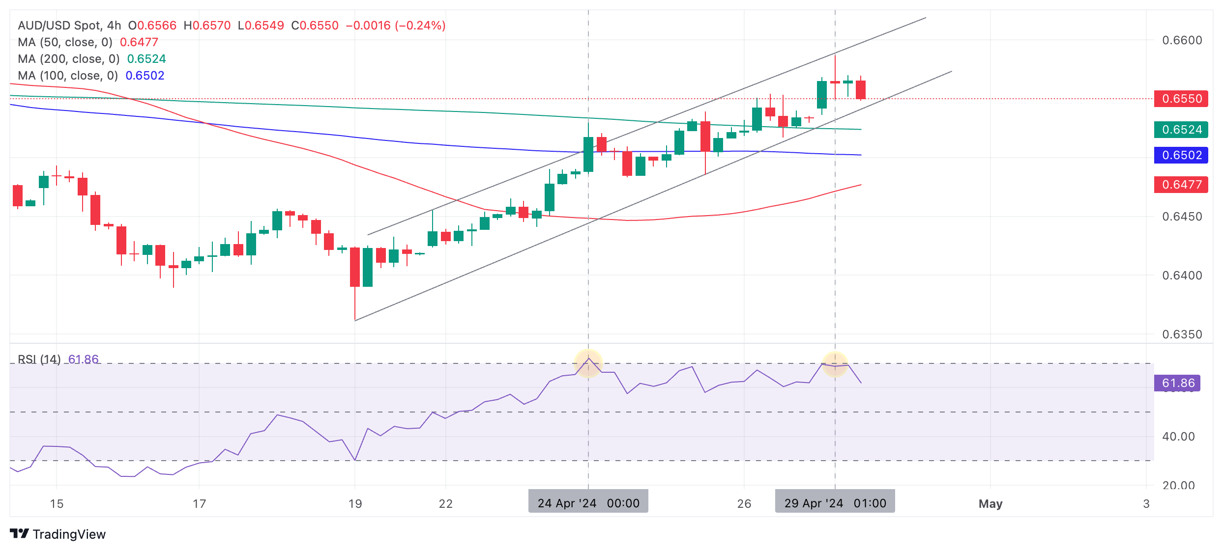 澳元/美元已突破所有三个主要移动平均线——50-4小时、100-4小时和200-4小时简单移动平均线(SMA)——这是近期看涨的迹象。