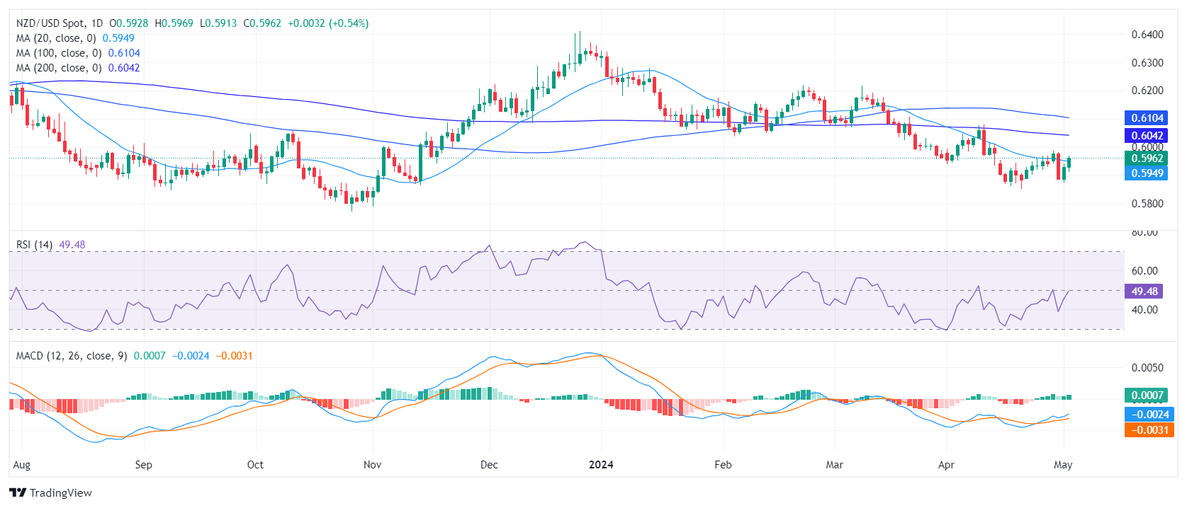 考虑到更广泛的市场走势,纽元/美元突破 20 日简单移动平均线 (SMA),表明潜在的短期上涨趋势。然而,该货币对仍徘徊在 100 日和 200 日移动平均线下方,意味着持续的抛售压力和长期看跌的市场偏见。话虽如此,多头正在提出需要认真考虑的论点,并将开始将目光瞄准 100 日移动平均线 0.6100。