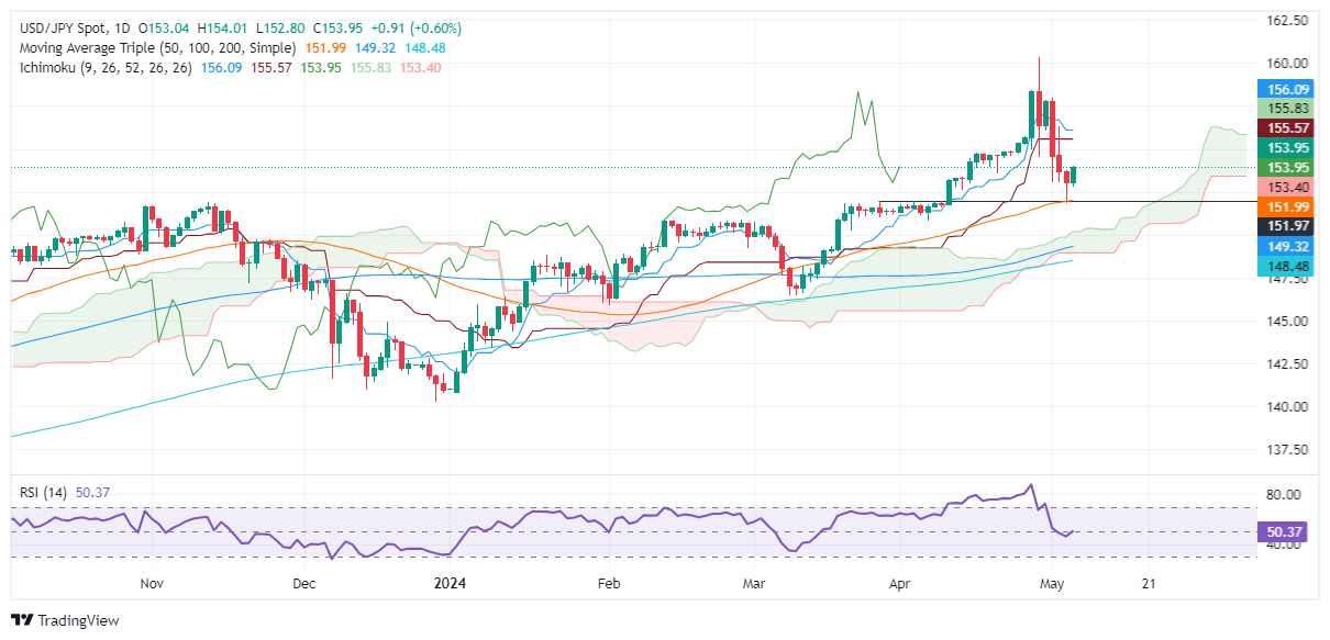 美元/日元价格分析:从 50 日均线反弹后攀升至 154.00
