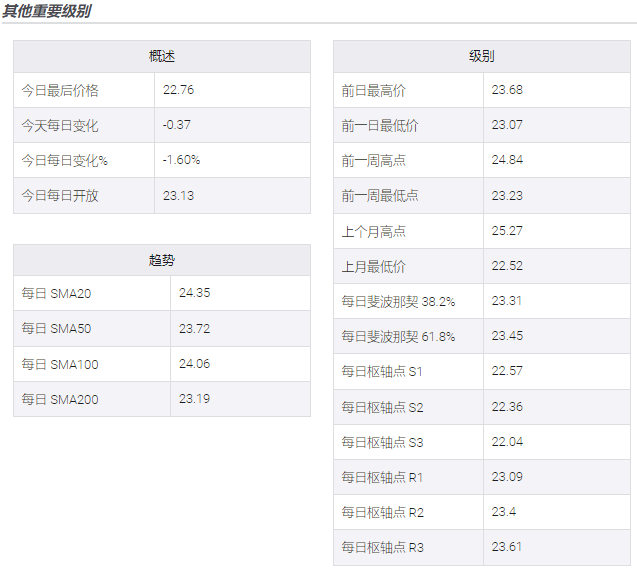 与此同时,上行突破支撑位转阻力位(最晚约为 23.10 美元)并不是对白银买家的公开邀请,因为 23.25 美元附近的 200 日均线也充当了额外的上行过滤器。