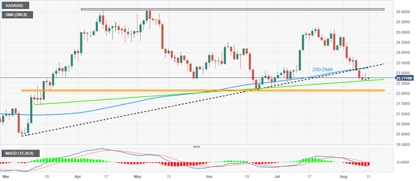200 日均线的收敛、3 月初的阻力位转为支撑位与 MACD 的看跌信号相结合,刺激 XAG/USD 多头。