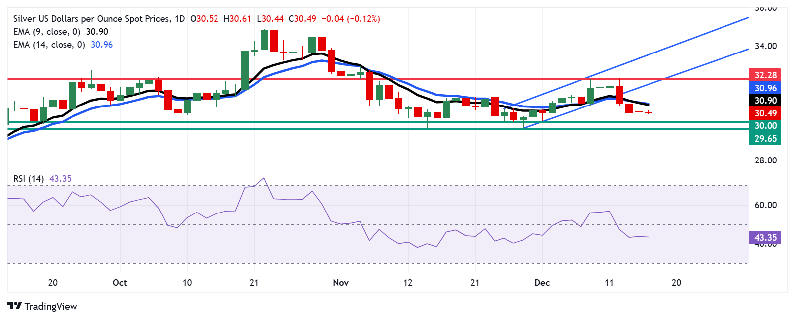 白银价格预测:白银/美元在30.50美元附近仍然不温不火,前景看跌