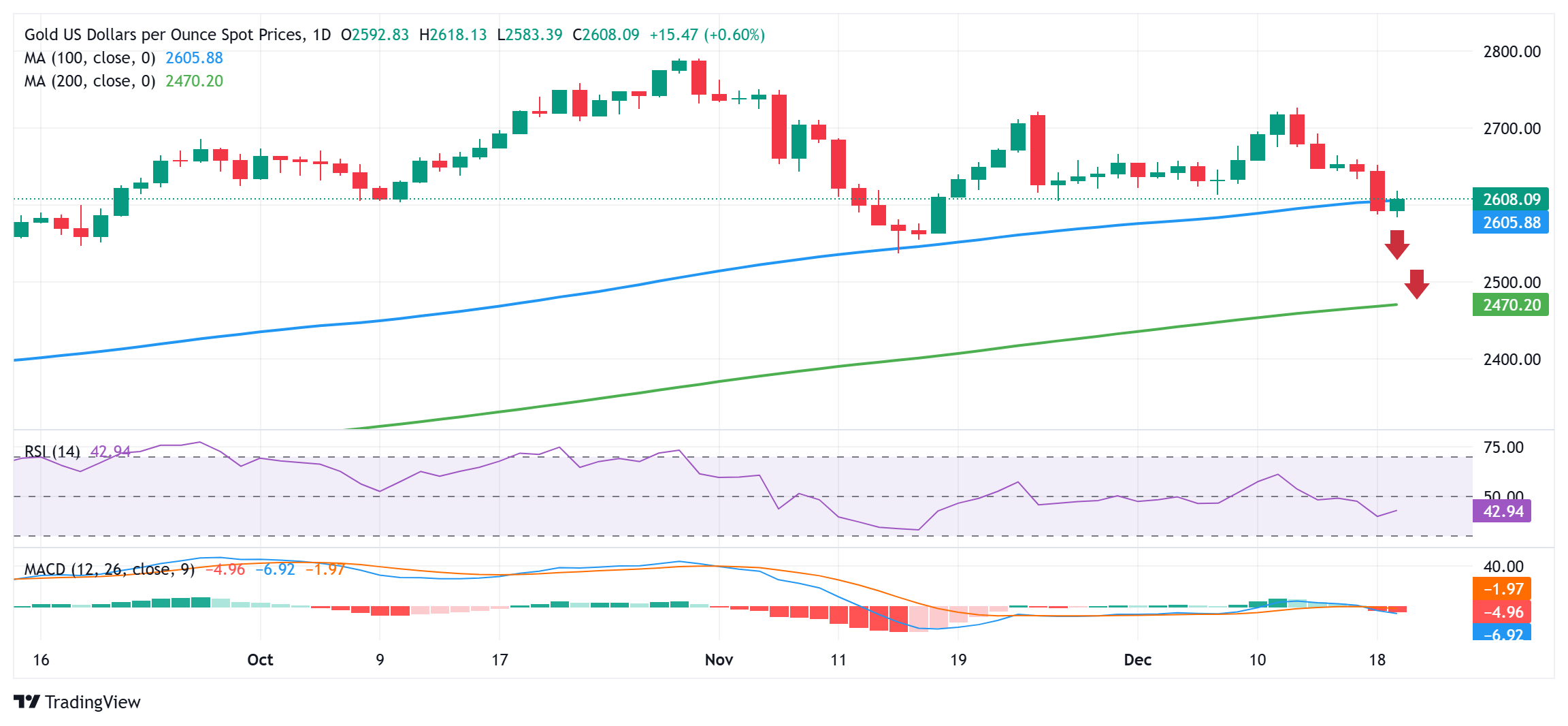 金价技术配置有利于看跌交易者;100天SMA支撑崩溃