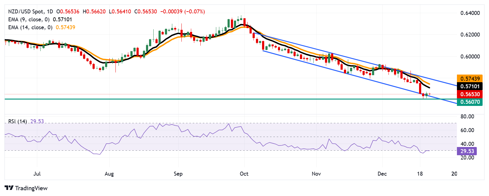 新西兰元/美元价格预测:在0.5650附近保持低迷,这是下行通道的下限