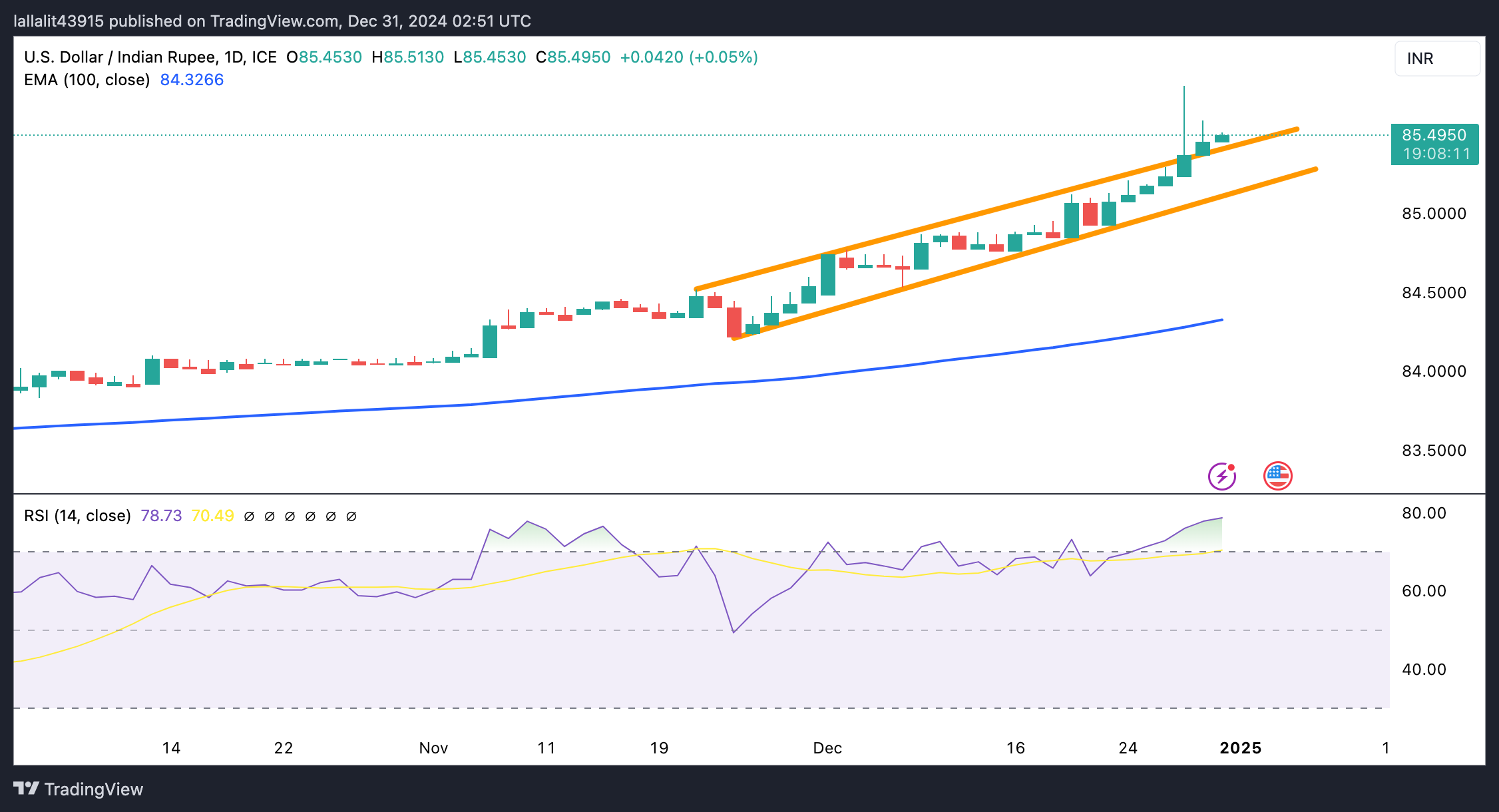 印度卢比(INR)周二继续下跌,此前已跌至前一交易日的最低收盘水平。由于离岸人民币和广泛的美元需求下降,本币仍面临抛售压力。此外,对美联储(Fed)长期政策利率上升的预期上升、资本流入不温不火以及即将上任的美国总统唐纳德·特朗普(Donald Trump)的关税威胁导致印度卢比下跌。