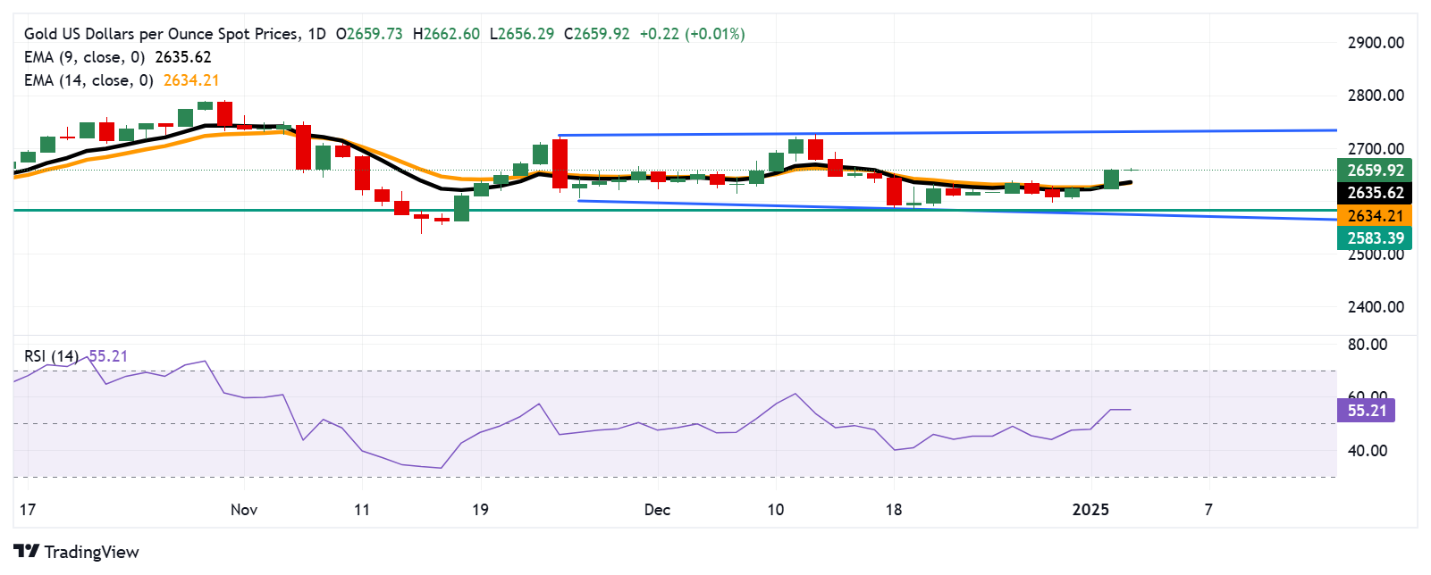 XAU/USD货币对可能会测试9天和14天EMA附近的初始支撑位,分别为2635.00美元和2633.00美元。进一步的支撑出现在12月19日创下的2583.39美元的月度低点附近。