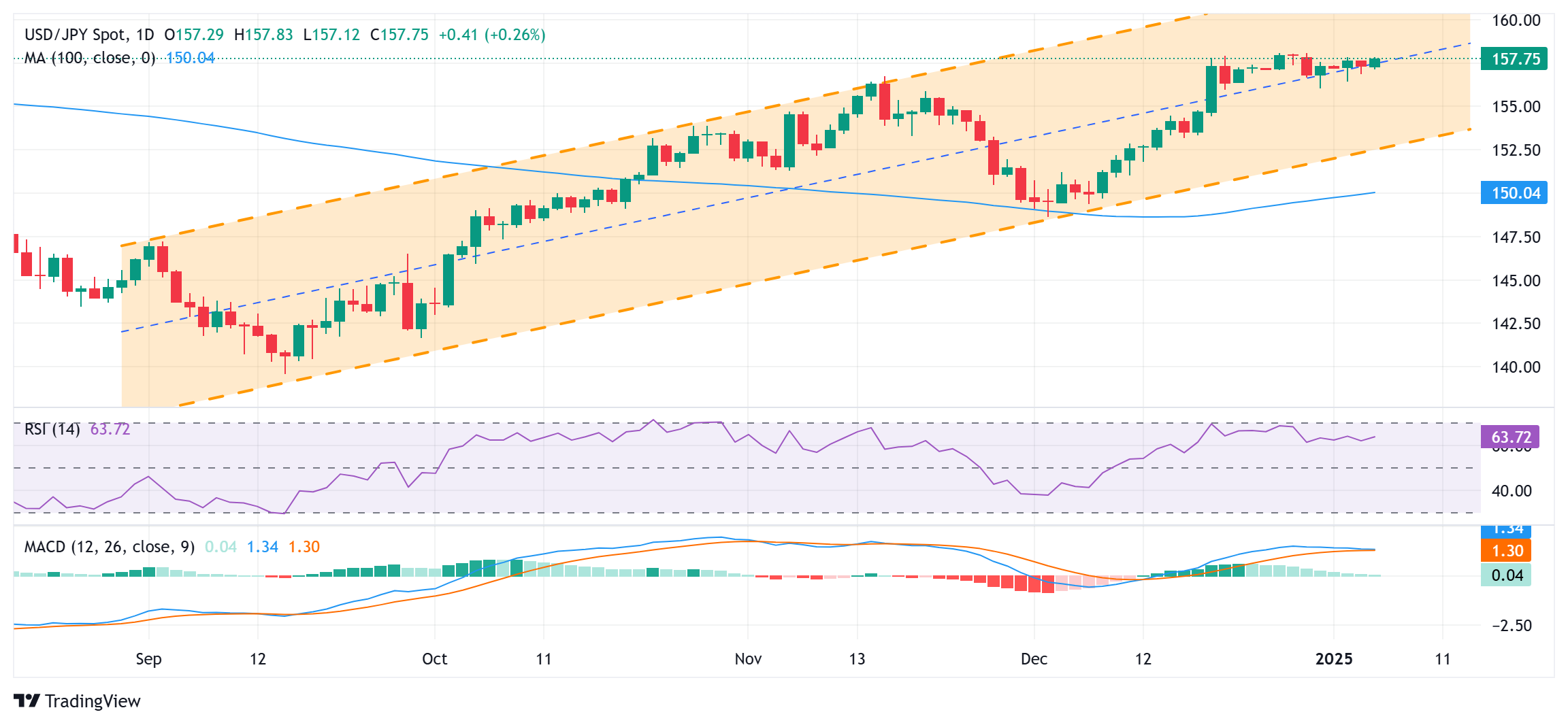 日元(JPY)在新的一周开始时吸引了新的卖家,并与12月触及的美国货币接近数月低点。日本央行(BoJ)的温和前景,以及普遍存在的情绪风险,是破坏避险日元的关键因素。此外,在美联储(Fed)鹰派信号和对美国当选总统唐纳德·特朗普扩张性政策的乐观情绪的支撑下,看涨的美元(USD)成为美元/日元对的顺风。