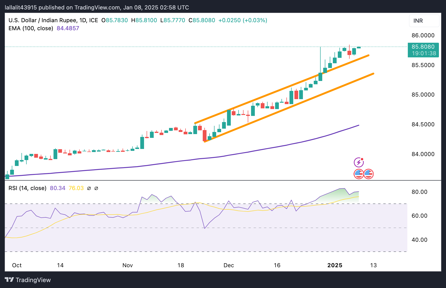 美元/印度卢比保持积极态势,但超买RSI值得多头谨慎