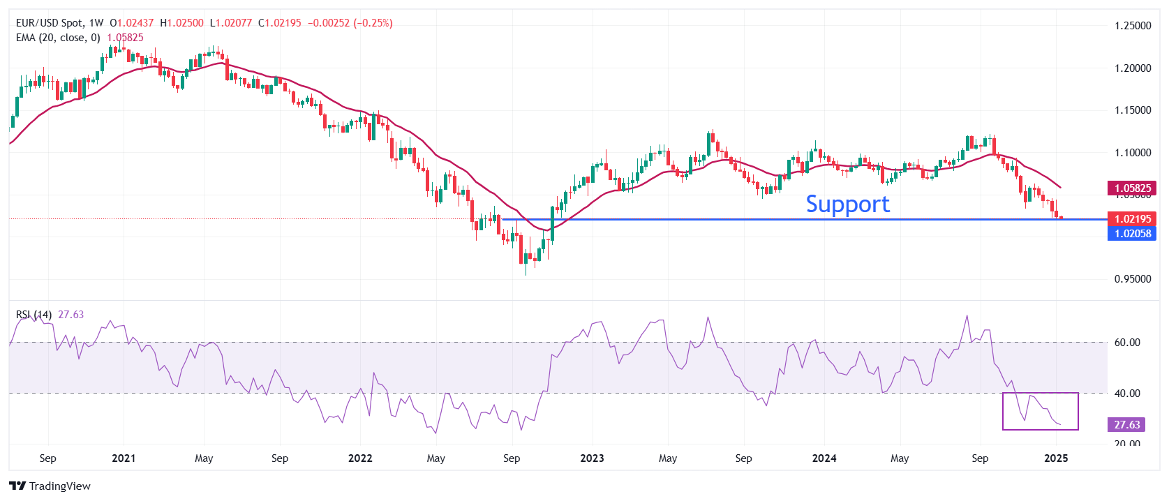 技术分析:欧元/美元跌至1.0200附近