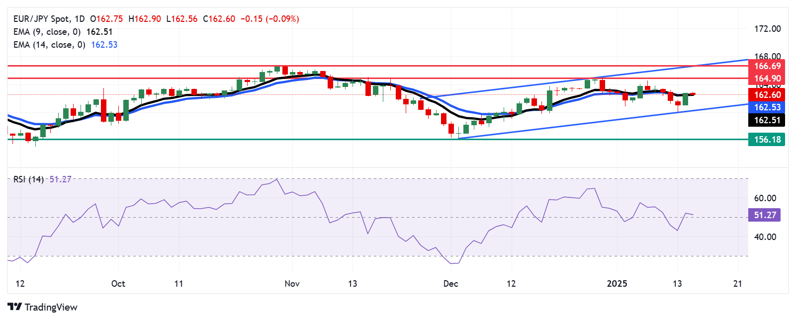 欧元/日元价格预测:小幅下跌至162.50附近;初始支撑出现在14天均线