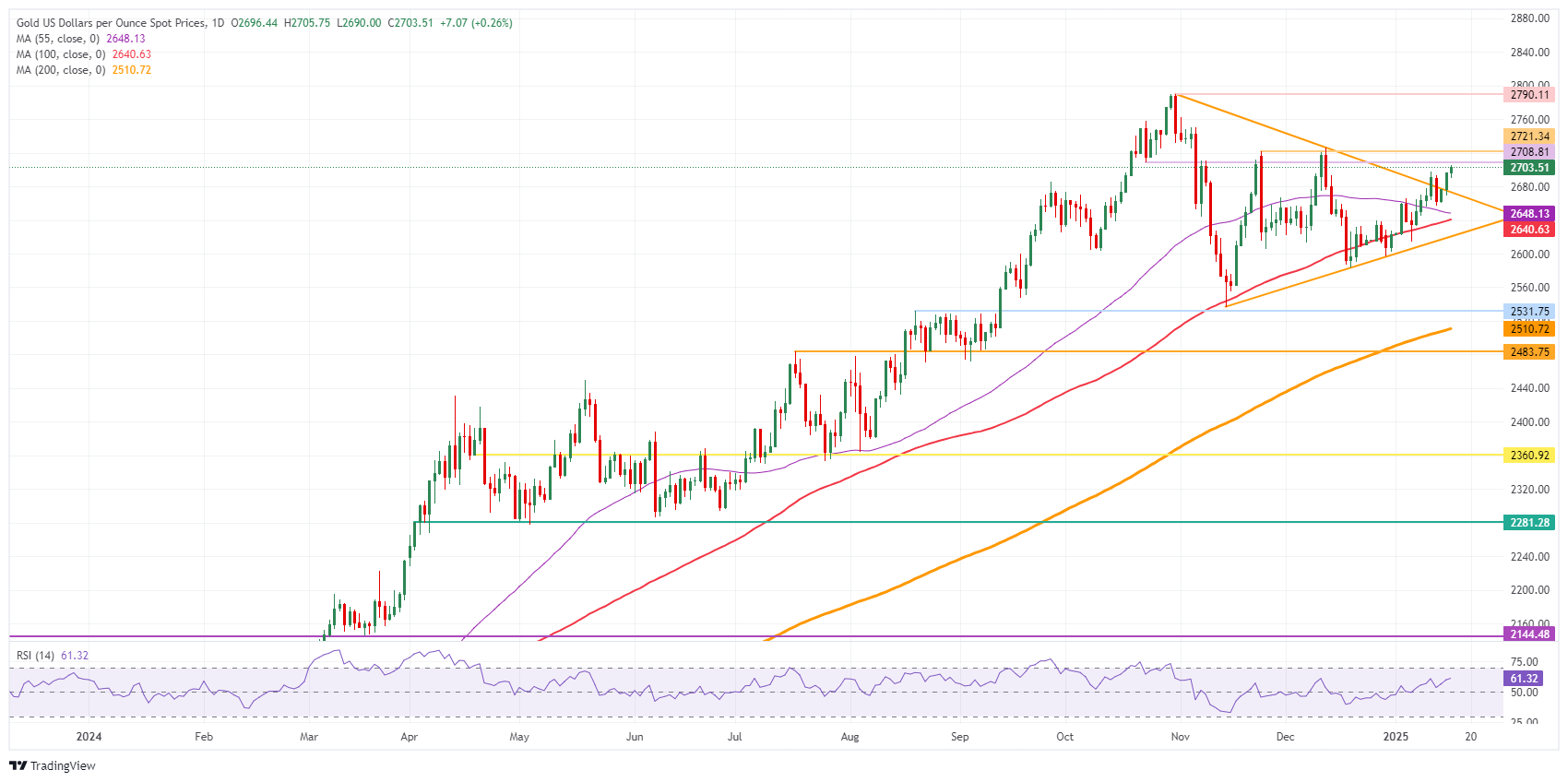 黄金价格(XAU/USD)连续第三天上涨,抹去了每周的损失,在周四撰写本文时已升至2700美元以上。经济复苏是在周三12月美国消费者价格指数(CPI)数据公布之际出现的。