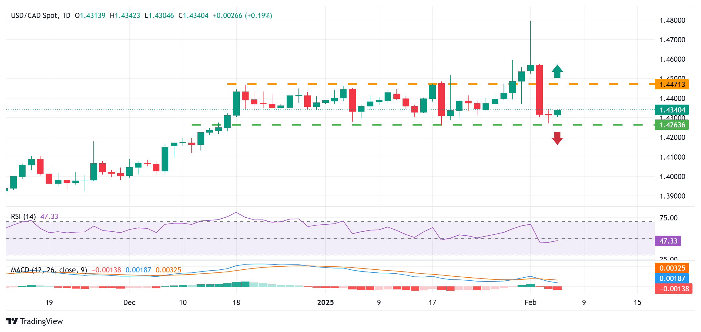 从技术角度来看,美元/加元对在年初至今的低点(1月份触及的1.4260附近)之前找到了一些支撑,随后的上涨让看跌交易者保持谨慎。也就是说,日线图上的振荡指标刚刚开始获得负牵引力,表明现货价格阻力最小的路径是下行。一些跌破1.4270-1.4260区间的后续抛售将重申前景,并为跌至1.4200圆形数字铺平道路。