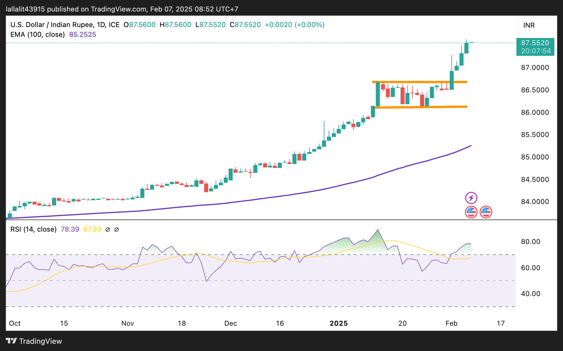 在亚洲货币普遍下跌、围绕美国贸易关税的不确定性和持续的投资组合外流的情况下,本币仍然脆弱。尽管如此,印度储备银行通过国有银行出售美元的常规干预可能有助于限制印度卢比的损失。周五晚些时候,投资者等待美国1月份的劳动力市场数据,包括非农就业人数(NFP)、失业率和平均小时收入。