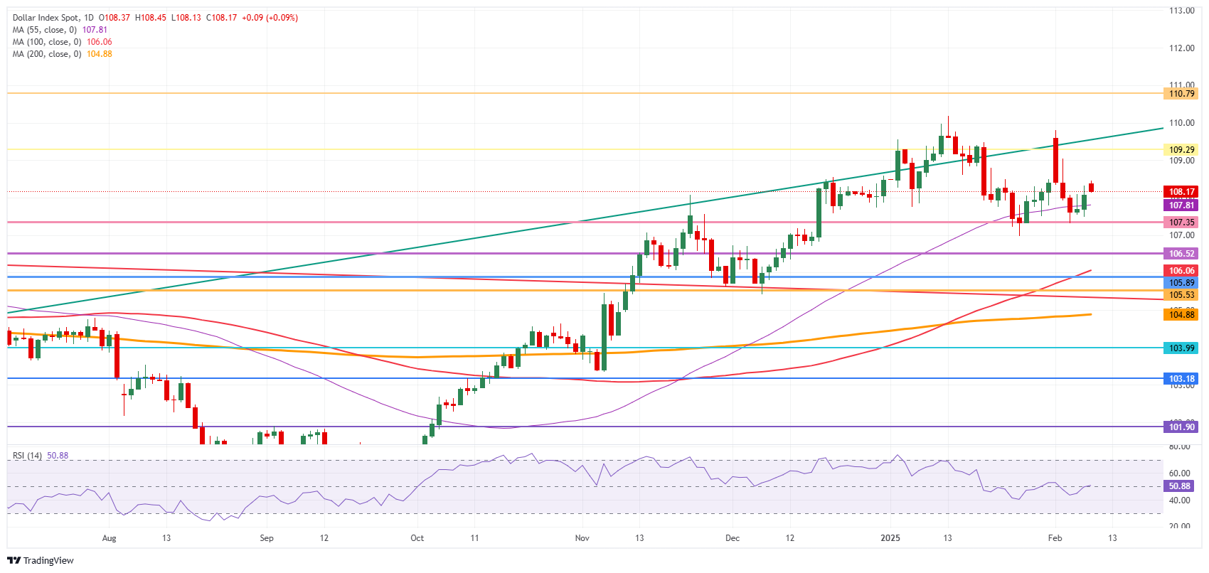 美元指数(DXY)无处可去,交易价格在108.00左右。