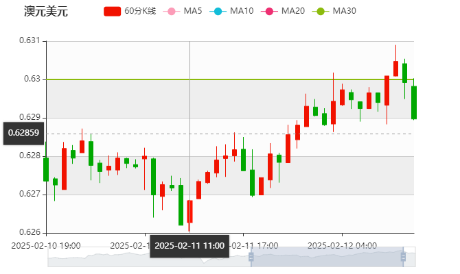 周三(2月12日)亚市早盘,澳元/美元上涨,目前交投于0.63附近,截止北京时间11:05分,澳元/美元报价0.6304,上涨0.16%,上一交易日澳元/美元收盘报0.6294。澳洲联储目前的利率政策仍是影响澳元的关键因素。