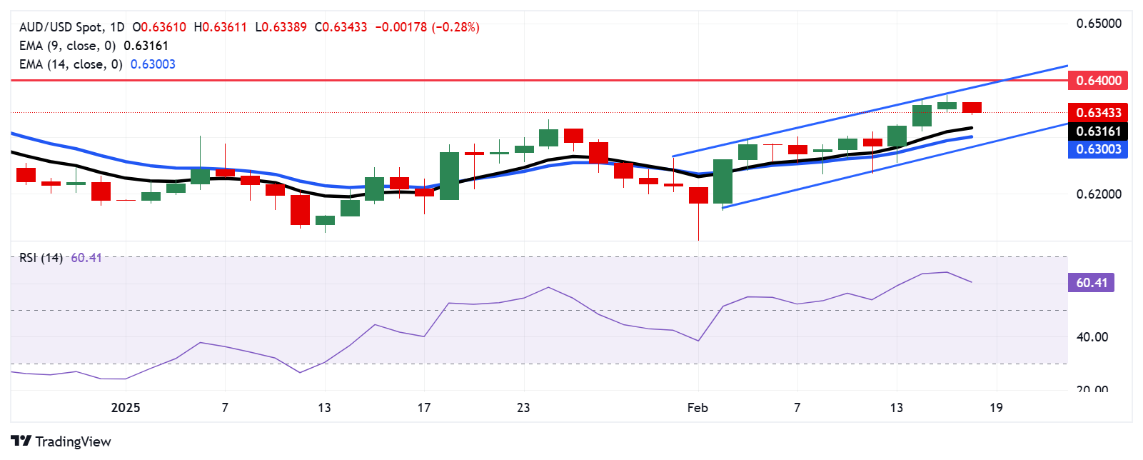 周二,澳元/美元在0.6340附近交易,在上升通道模式内呈上升趋势,表明市场看涨。14天相对强弱指数(RSI)仍高于50水平,进一步支持看涨前景。