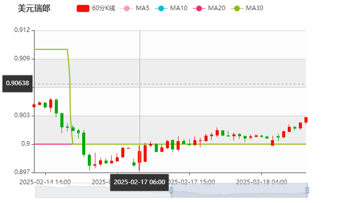 周二(2月18)美元兑瑞郎汇率今日开盘报0.9008,昨日收盘于0.9008,截至发稿前美元/瑞郎报0.9018,涨幅0.11%,最高价0.9021,最低价0.8997。瑞士联邦统计局公布的数据表明,1月瑞士消费者物价指数(CPI)同比增幅回落至0.4%,与市场预期相符,同时创下自2021年4月以来的最低纪录。