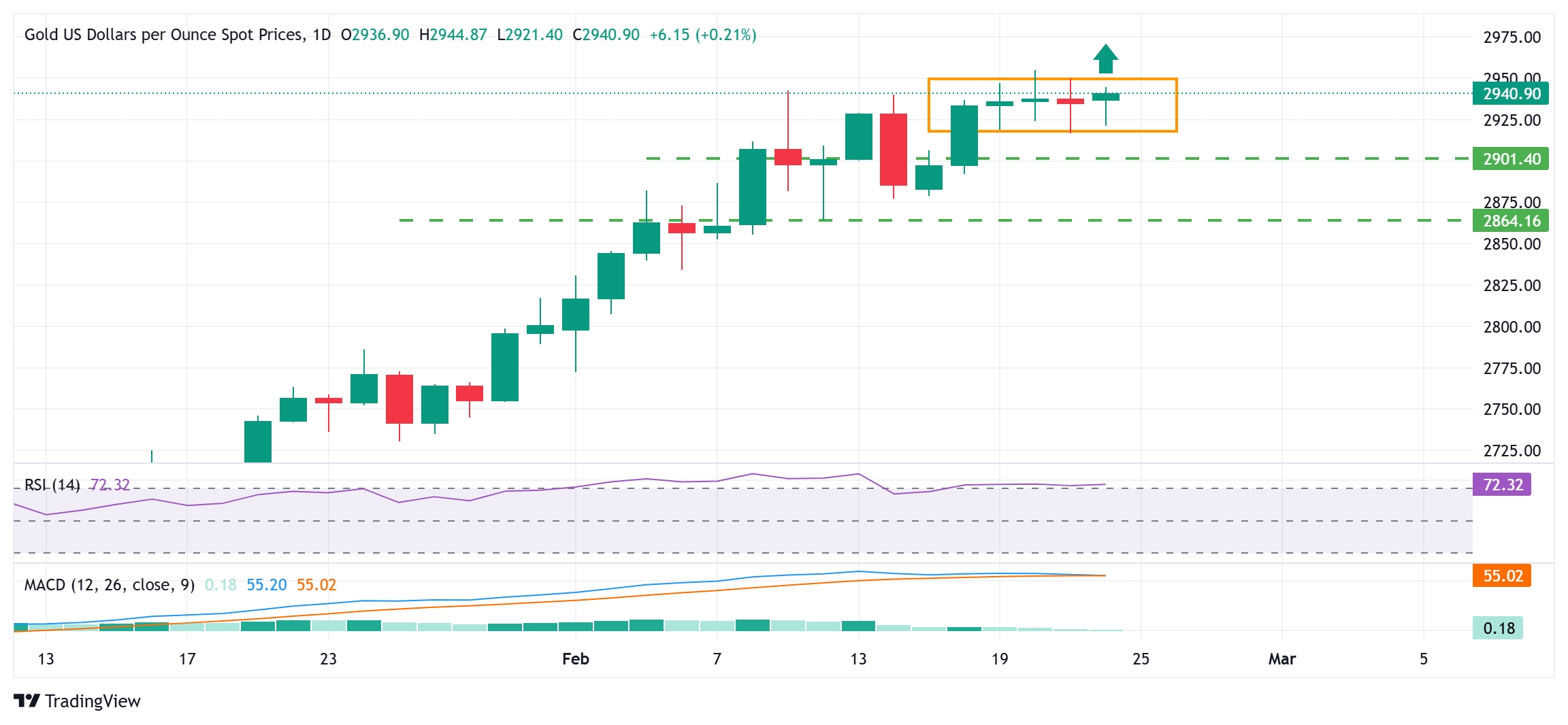 从技术角度来看,每日相对强弱指数(RSI)保持在70点以上,并指向轻微超买状态。这可能会阻止交易员围绕金价进行新的看涨押注,这支持了区间价格行动延长的前景。也就是说,一些人在2950-2955美元区域或历史高点之后继续买入,将被视为牛市的新触发器,并帮助XAU/USD在过去两个月左右的时间里建立其最近确立的上升趋势。