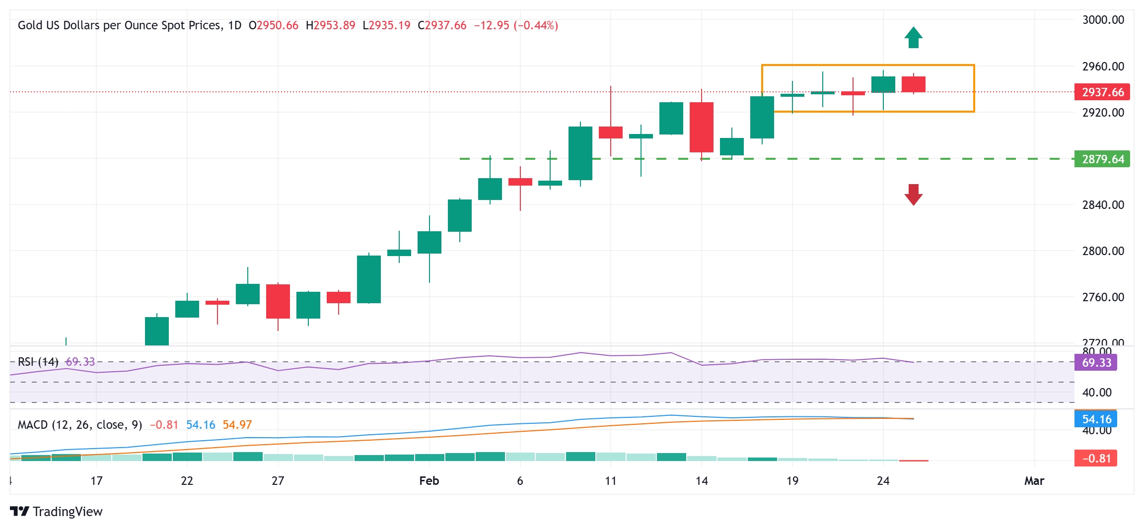 黄金价格分析:任何修正性的下跌都可能继续吸引2920-2915美元附近的一些下跌买家