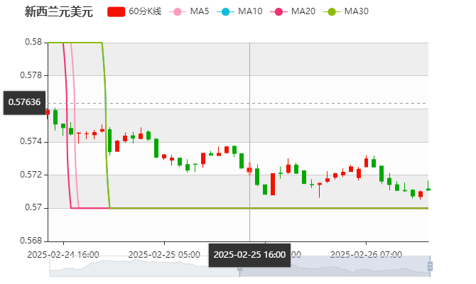 周三(2月26日)新西兰元兑美元汇率今日开盘报0.5724,昨日收盘于0.5725,截至发稿前新西兰元/美元报0.5715,跌幅0.17%,最高价0.5733,最低价0.5710。新西兰联储首席经济学家保罗·康威表示:低迷的纽元是其预测2025年经济复苏的一个重要原因之一。