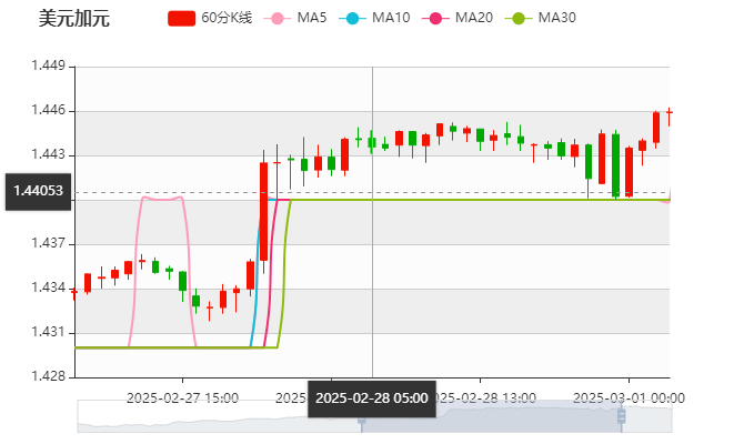周五(2月28日)亚盘早盘,美元/加元最新价报1.4448,涨幅0.02%,开盘价为1.4439。近期加元经济表现疲弱,尤其是在加拿大通胀水平持续低于加拿大央行2%的目标之际,关税的进一步实施可能会对加拿大经济造成更大压力。加