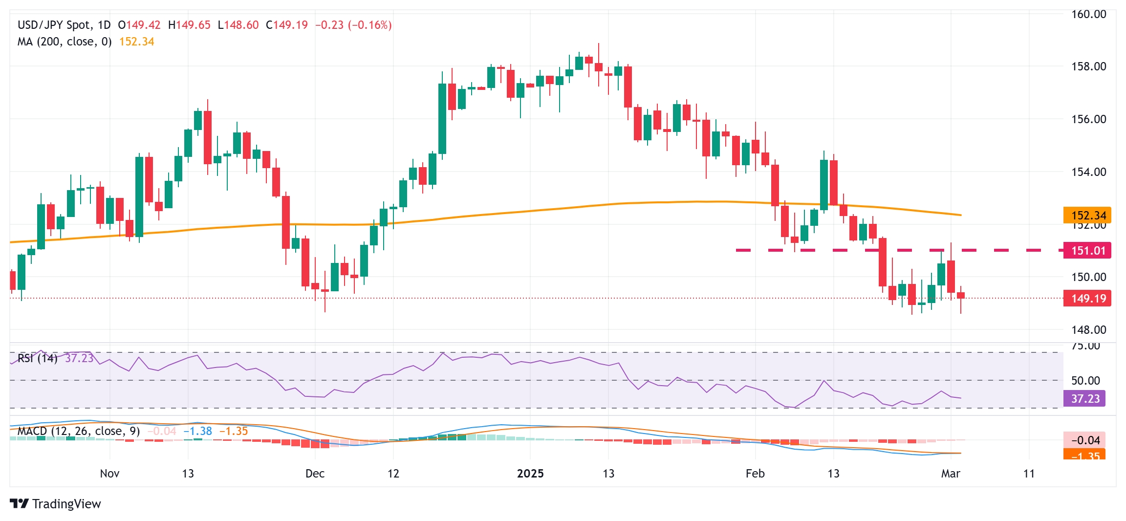 从技术角度来看,隔夜在151.00支撑点附近的失败,现在变成了阻力,证实了美元/日元对的短期看跌前景。此外,日线图上的振荡指标仍处于负值区间,距离超卖区还有一段距离。这反过来又支持了该货币对在过去两个月左右的时间里延续其最近确立的下跌趋势的前景。因此,一些人在148.00点以下持续下跌,接近148.00点附近的下一个相关支撑位,这似乎是一种明显的可能性。向下的轨迹可能会在通往147.00标记的途中进一步向147.35-147.30区域延伸。