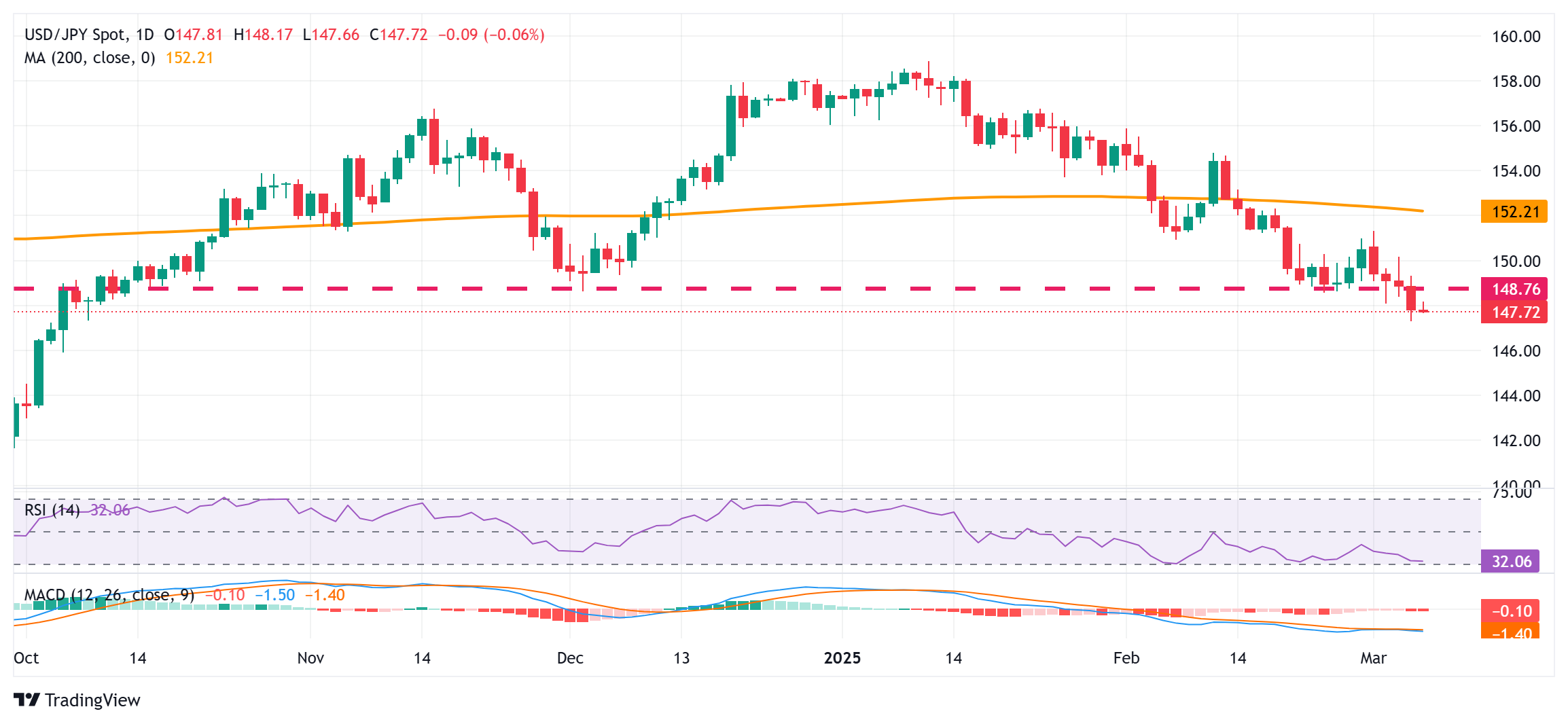从技术角度来看,本周跌破148.70-148.65水平支撑位被视为看跌交易者的关键触发因素。也就是说,日线图上的相对强弱指数(RSI)已经接近超卖区域,需要谨慎对待。因此,在为延续美元/日元两个月来的下跌趋势做好准备之前,谨慎的做法是等待近期的一些盘整或温和的反弹。