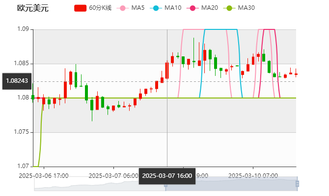 周一(3月10日)亚盘早盘,欧元兑美元下跌,目前交投于1.08附近,截止北京时间10:59分,欧元兑美元报价1.0837,跌幅0.08%,上一交易日欧元兑美元收盘为1.0845。德国政府宣布计划投入数千亿欧元用于国防和基础设施建设,这一消息刺激欧元大幅上涨。