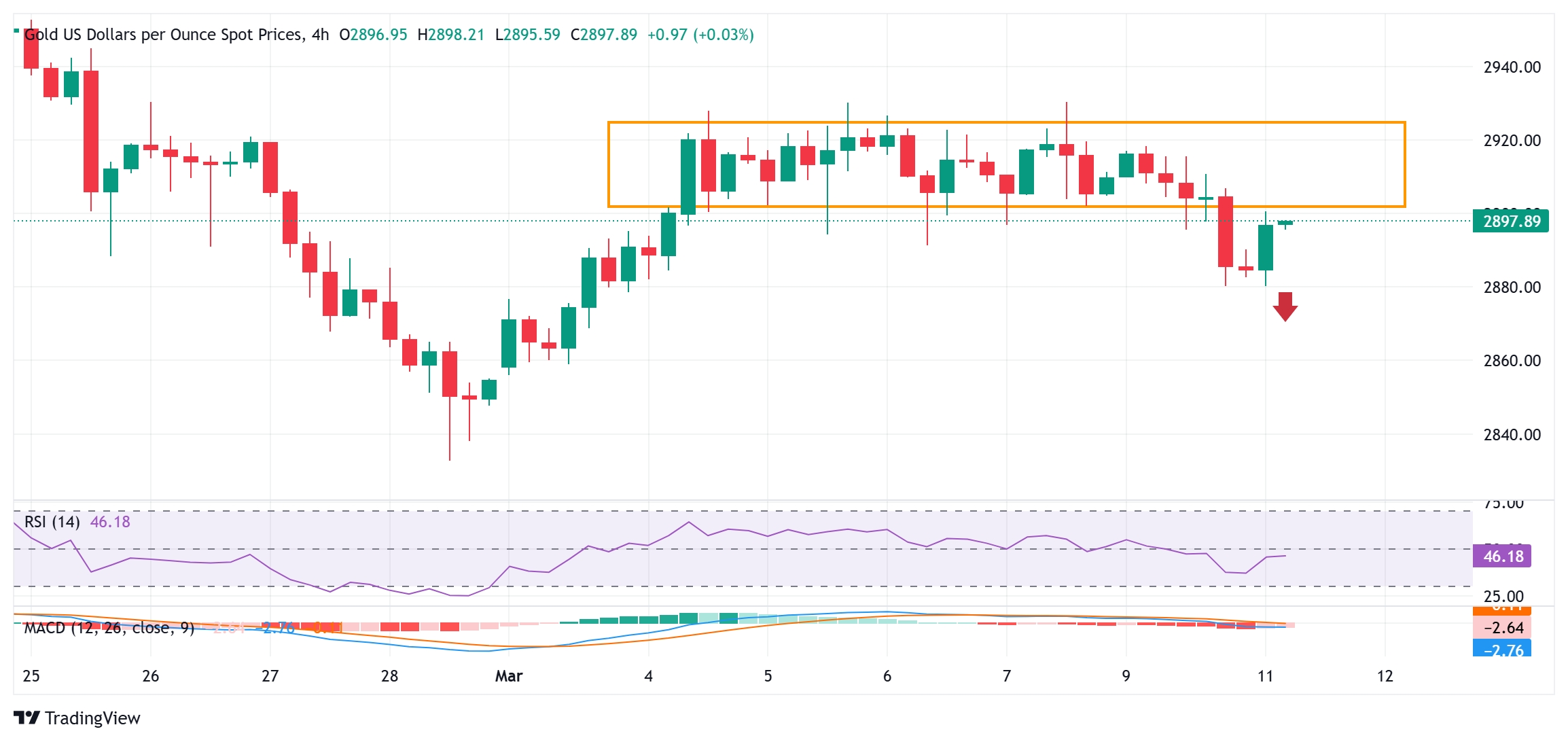 从技术角度来看,隔夜下跌并收于2900美元以下,即短期交易区间的下限,可能被视为看跌交易者的关键触发因素。也就是说,日线图上的混合振荡指标表明,在进一步下跌之前,谨慎的做法是等待一些后续抛售跌破2880美元区域,即一周低点。随后的下跌可能会将金价拖入2860美元的中间支撑位,进而跌至2月底的低点,即2833-2832美元附近和2800美元大关。