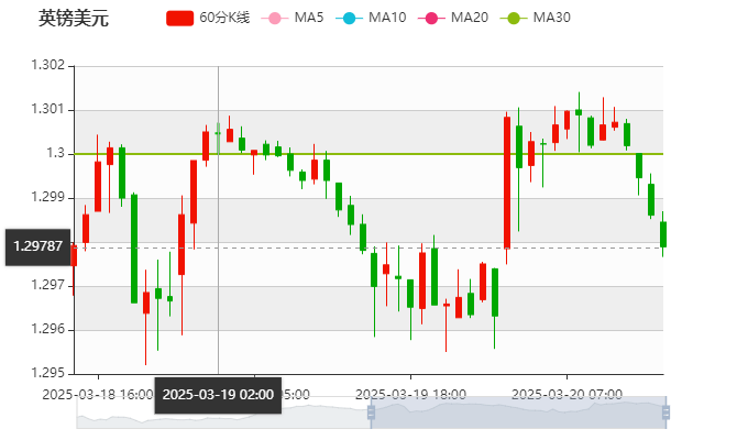 周四(3月20日)亚市盘中,英镑/美元展现韧性,维持在1.3000上方,接近五个月高点,连续第四个交易日保持正值区域,本交易日主要事件风险为英国央行利率决议,预计利率将维持在4.5%不变,在关税不确定性和国防开支增加的情况下,英国央行料将保持谨慎态度。