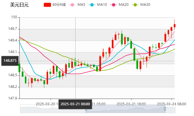 周一(3月24日)亚盘早盘,美元兑日元上涨,目前交投于149附近,截止北京时间10:32分,美元兑日元报价149.77,上涨0.33%,上一交易日美元兑日元收盘为149.27。美元兑日元的走势将在基本面与技术面的双重博弈中寻找方向。日本央行对加息的谨慎态度叠加国内数据的疲软表现,使得日元难以摆脱低收益货币的弱势标签。