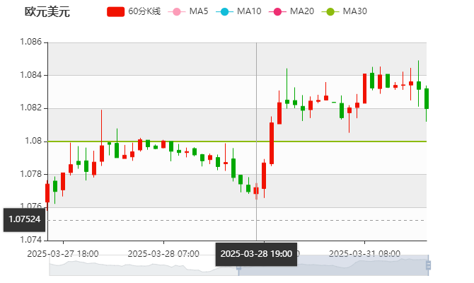 周一(3月31日)亚盘早盘,欧元兑美元上涨,目前交投于1.08附近,截止北京时间9:46分,欧元兑美元报价1.0841,涨幅0.16%,上一交易日欧元兑美元收盘为1.0824。欧元近期走势获得一定支撑,主要得益于市场对欧美贸易战担忧情绪的缓解。