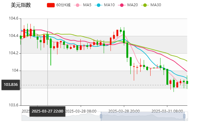周一(3月31日)亚盘早盘,美元指数最新价报103.80,跌幅0.19%,开盘价为104.01。近期美国经济数据呈现分化态势,引发市场对经济健康状况的重新评估。