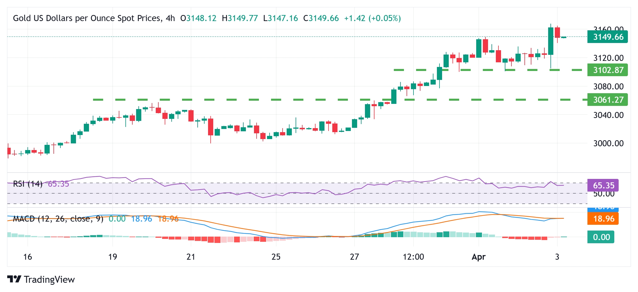 在欧洲交易时段的前半段,黄金价格(XAU/USD)在3116美元附近找到了一些支撑,目前来看,似乎在本周四早些时候触及的新纪录高点处停止了日内回撤。投资者越来越担心美国总统唐纳德·特朗普的大规模互惠关税可能会破坏全球自由贸易,并对世界经济产生负面影响。这在全球金融市场引起了震动,从普遍的风险厌恶情绪中可以看出,并为避险资产提供了部分支撑。
