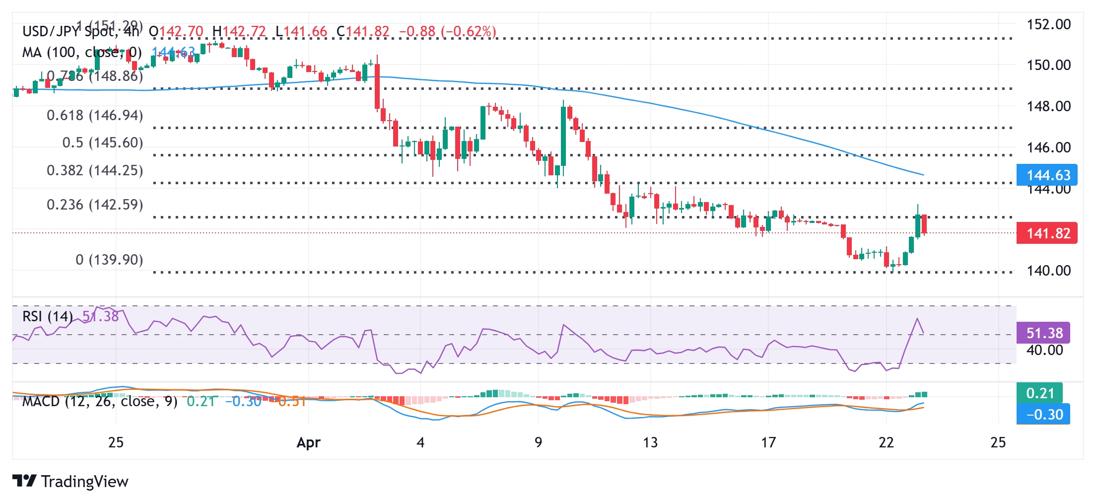 美元/日元难以在143.00水平或23.6%斐波那契回撤位上方获得认可。