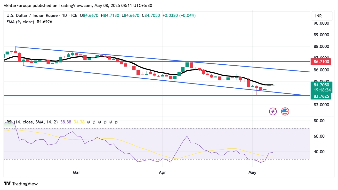 美元/印度卢比交易价格在84.50附近,从接近九日指数移动平均线的水平有所撤退