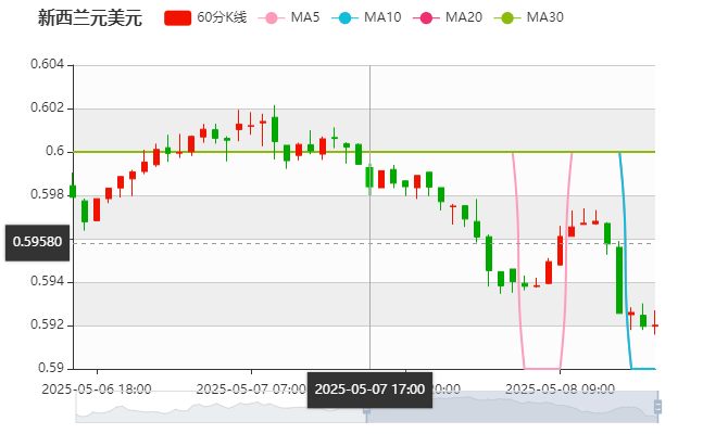 周四(5月8日)新西兰元兑美元汇率今日开盘报0.5941,昨日收盘于0.5941,截至发稿前新西兰元/美元报0.5971,涨幅0.50%,最高价0.5974,最低价0.5935。纽元近期疲软主要受到货币政策预期转向的影响。