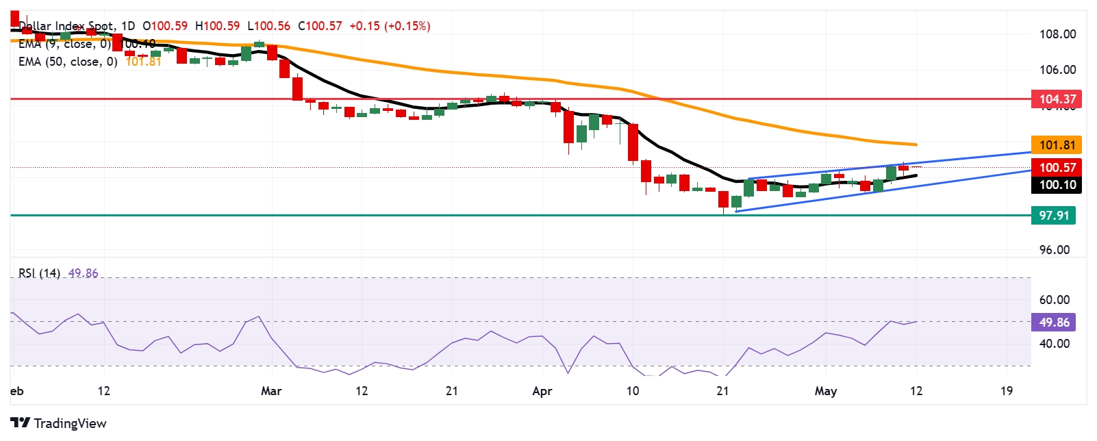 DXY 可能会将目标对准9天指数移动平均线(EMA)支撑位100.10。