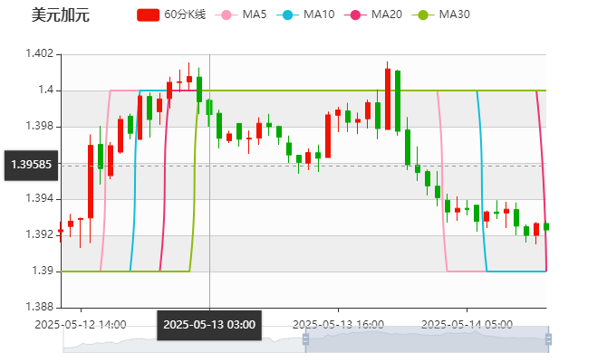 周三(5月14日)亚洲时段,美元兑加元汇率走弱至接近1.3920,昨日欧洲交易时段美元/加元距离心理关口1.4000仅一步之遥,美国通胀数据低于市场预期后,美元兑加元汇率小幅下跌,跌破1.3950,日K收跌止步四连阳。