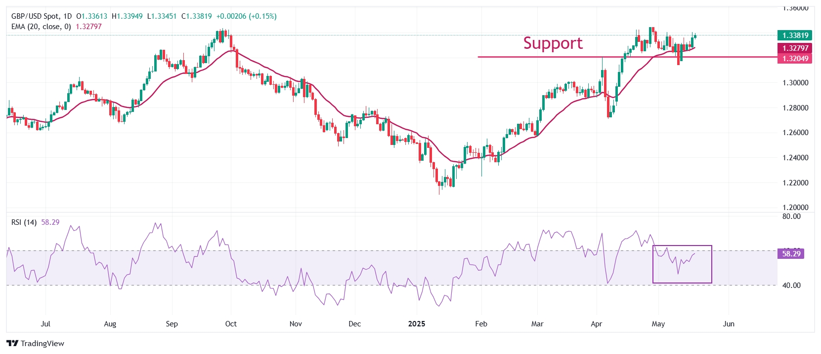 摘要:英镑兑美元进一步上涨至接近1.3380,因为穆迪下调了美国主权债务评级,并且关于美中贸易的新担忧浮现。