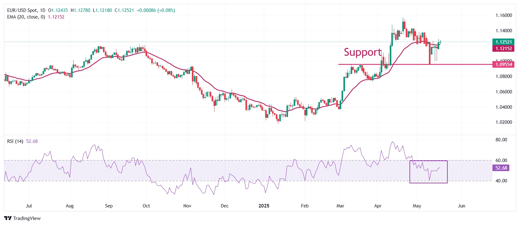 欧元/美元周二上涨至接近1.1250。由于该货币对保持在约1.1214附近的20日指数移动平均线(EMA),其短期前景看涨。