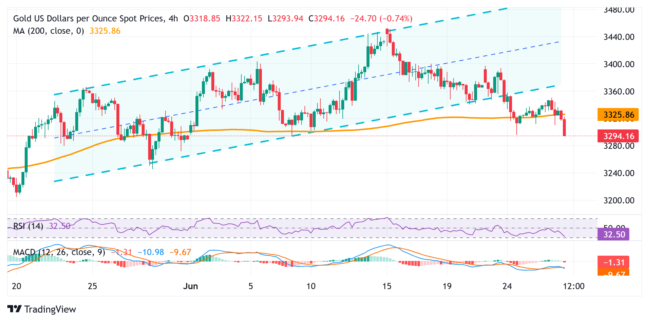 从技术角度而言,4小时图上日内价格若滑落至200期简单移动平均线(SMA)下方,可被视为在本周突破短期上升通道的背景下,黄金/美元空头的新触发因素。鉴于日线图上的指标刚刚开始呈现负面趋势,现货黄金价格可能会加速下跌,目标位为3245美元区域,之后可能会下探至3210-3200美元的水平支撑位和3175美元区域。