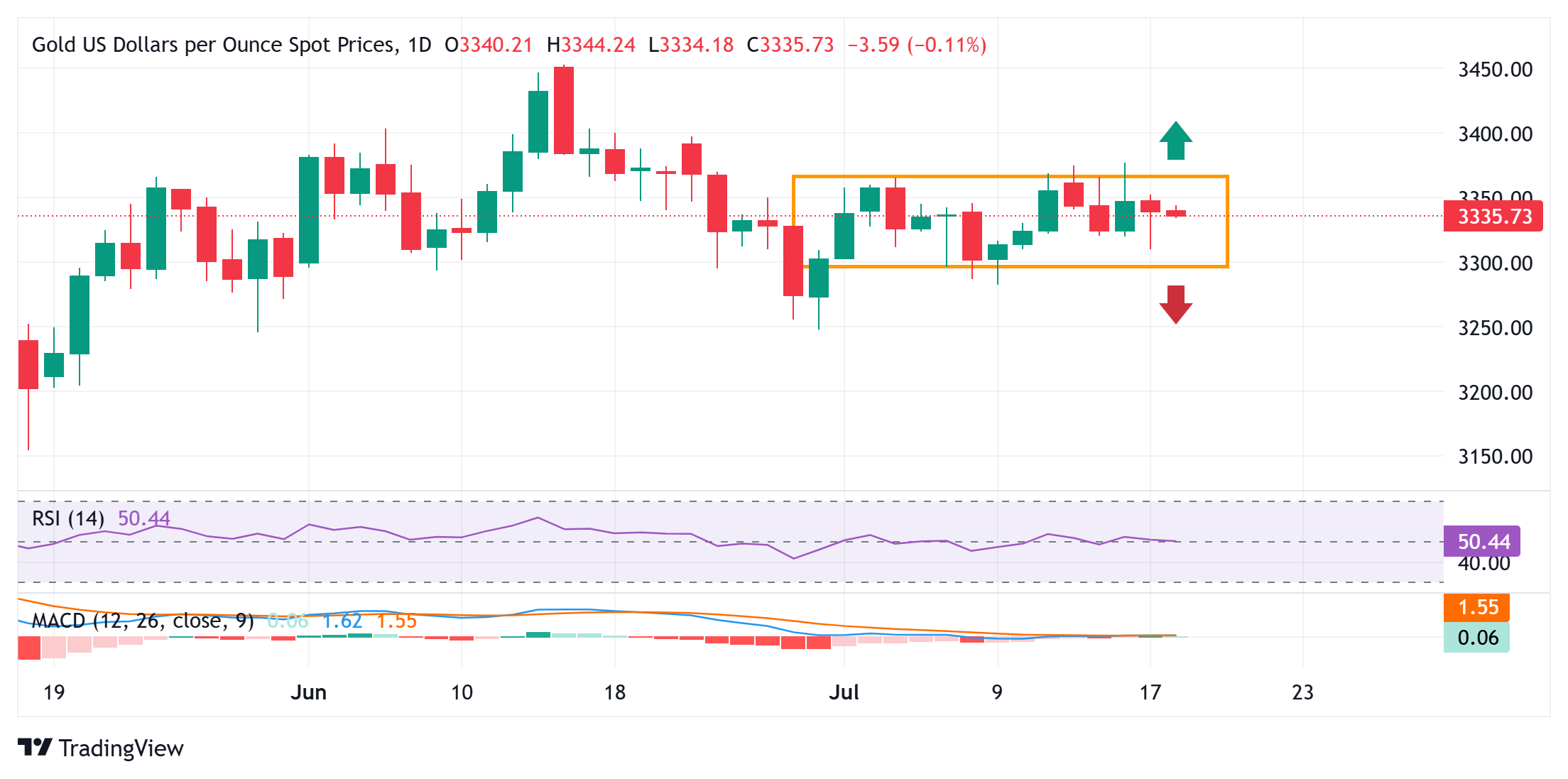 黄金价格需要突破交易区间障碍,接近3365美元区域,多头才能掌控局势。