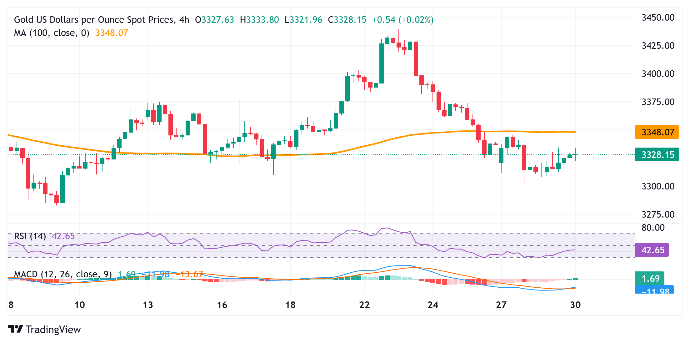 从技术角度而言,4小时图上100期简单移动平均线(SMA)下方的近期下跌被视为XAU/USD空头的关键触发因素。此外,所述图表上的负面振荡器表明,任何后续的上涨可能仍被视为卖出机会,并且可能会受到限制。然而,从$3,300附近,或周一触及的近三周低点的温和反弹,对于空头交易者来说需要一些谨慎。因此,在定位任何进一步的损失之前,最好等待一个可靠的突破低于上述支撑位,即$3,260-3,255支撑位,代表100天SMA。