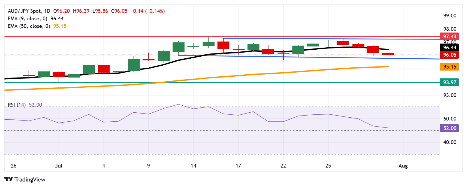 AUD/JPY可能会在96.44的九日指数移动平均线处找到主要阻力位。