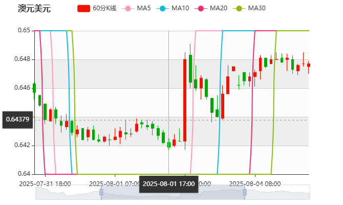 周二(8月5日)亚市早盘,澳元兑美元下跌,目前交投于0.64附近,截止北京时间11:04分,澳元/美元报价0.6461,下跌0.10%,上一交易日澳元/美元收盘报0.6467。澳元/美元昨日延续反弹走势。美元持续承压,因市场对美国经济前景的担忧加剧。