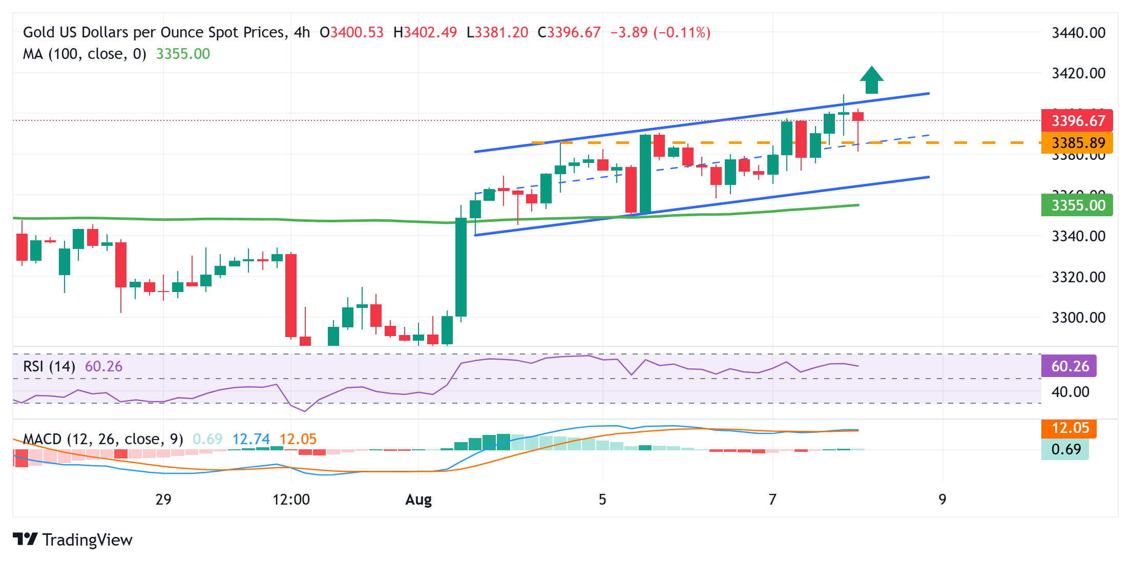 黄金价格需要在3400美元以上找到支撑,以支持任何进一步上涨的走势。