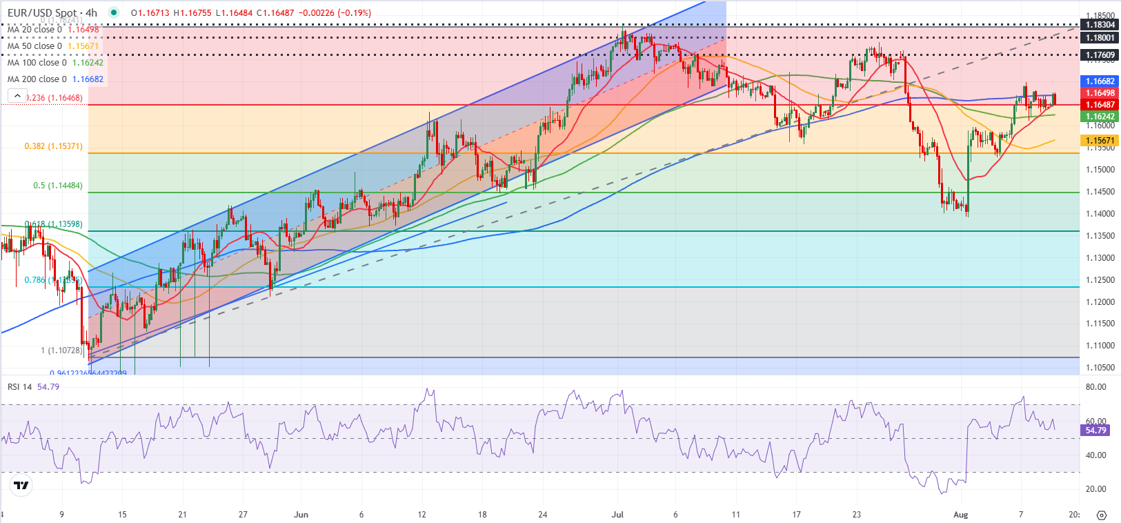 4小时图表上的相对强弱指数(RSI) 指标保持在50以上,但 欧元/美元 仍低于200期简单移动平均线(SMA),目前位于1.1670,反映出买家的犹豫。