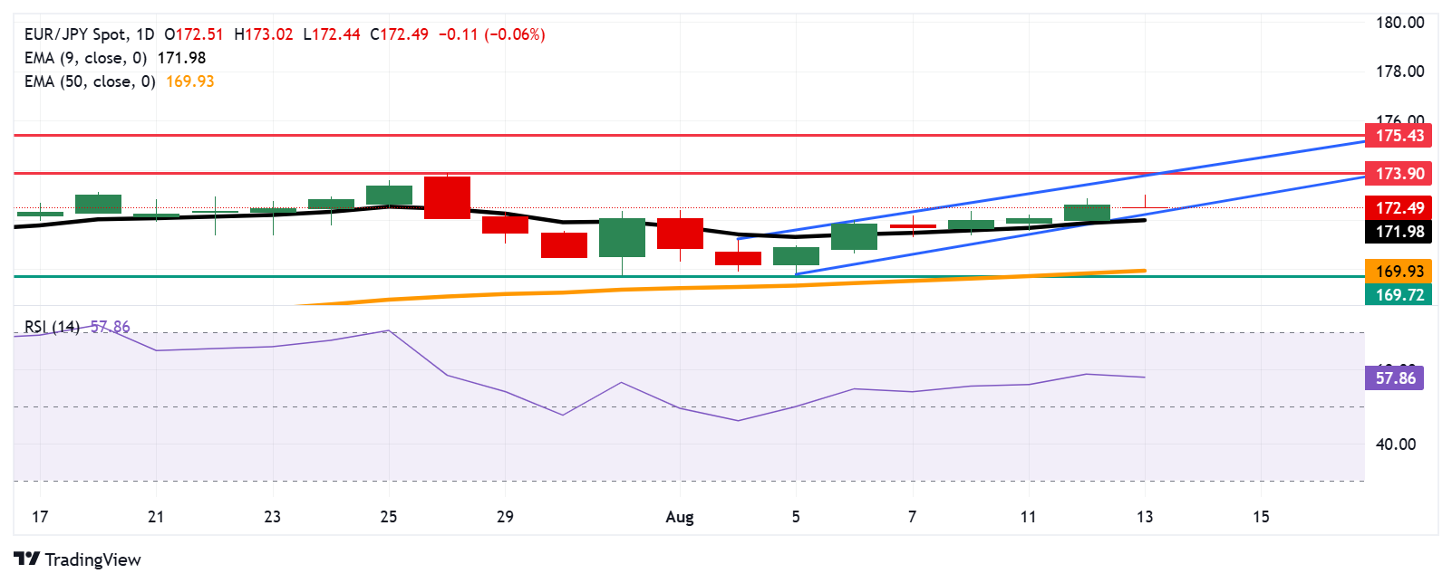 欧元/日元价格预测:徘徊在172.50附近,关注九日指数移动平均线支撑